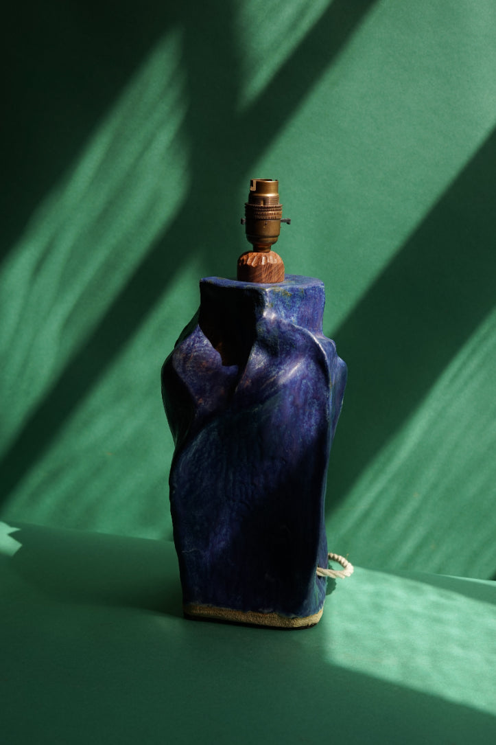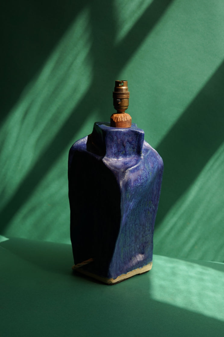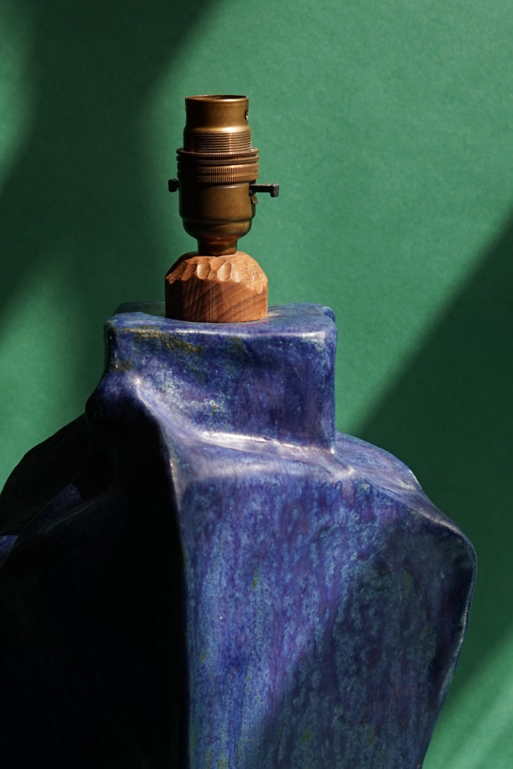 Iona's stoneware lamp bases are each inspired by the things she finds on her Hebridean coastal walks. The young designer bases her forms on moods rather than literal reincarnations of the objects that catch her eye. She builds bases by hand and hand makes the glazes under her grandmother's tuition. This inky blue creation has the feeling of a strange treasure found deep in a rock pool. Its mottled blue glaze could belong to a lobster, or a rogue and beautiful piece of shipwreck flotsam.