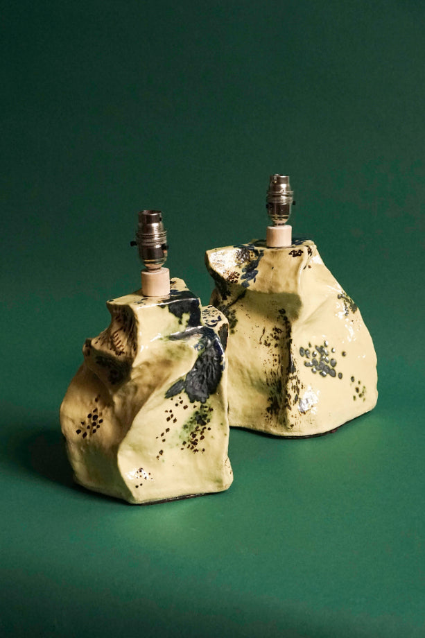 Iona's stoneware lamp bases have forms inspired by the 'flotsam and jetsam of the wild Hebridean coastlines,' as she describes. This smaller pair from her Tamna collection sit together beautifully. The designer fires her bases in her grandmother's kiln.