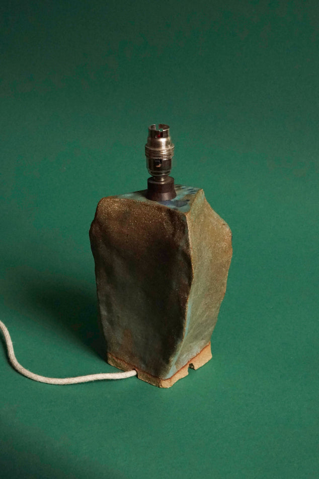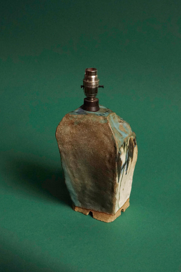 The stoneware lamp bases by Iona bear the echoes of her tidal finds from walks along the Atlantic coastlines of the Hebrides. 'The discovery of the bleached whale bones and fluorescent fishnets caught in the rocks reappear in the forms of my ceramic lamp bases,' explains the young designer, who builds her sculptural lamp bases by hand and fires them in her grandmother's kiln. Each lamp base has its own character and we are drawn to this one for its geological energy and the elemental quality of its tactile, mat glaze, as if smoothed by the tides.