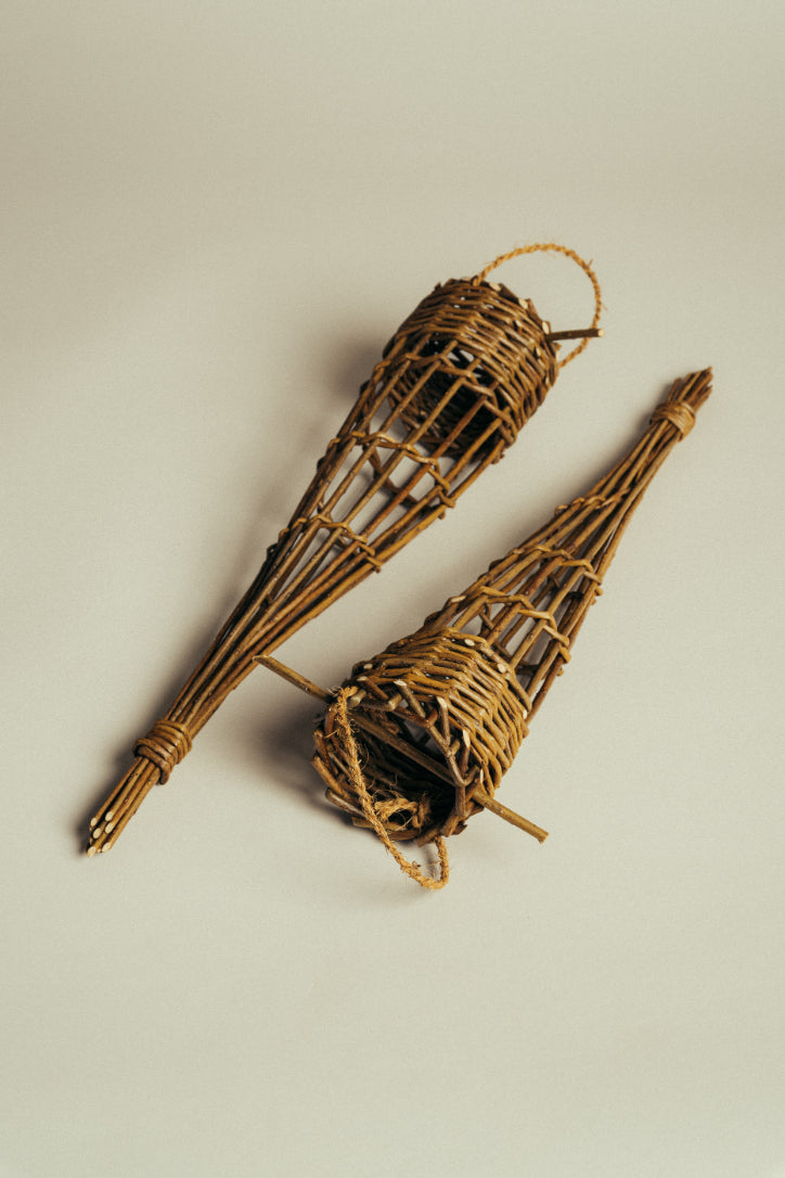 The Bard-feeders are to be filled with fat-balls. They are year-round hanging bird feeders, which come into their own in the hungry gap months for our feathered friends. Hung outside, they will last several seasons and then they can be composted at end of life. The perching-stick through the top has a double function, acting as a safety feature to stop Blackbirds getting stuck. If you don’t have a garden, they could also be used for garlic and ginger and perhaps shallots in the kitchen too.